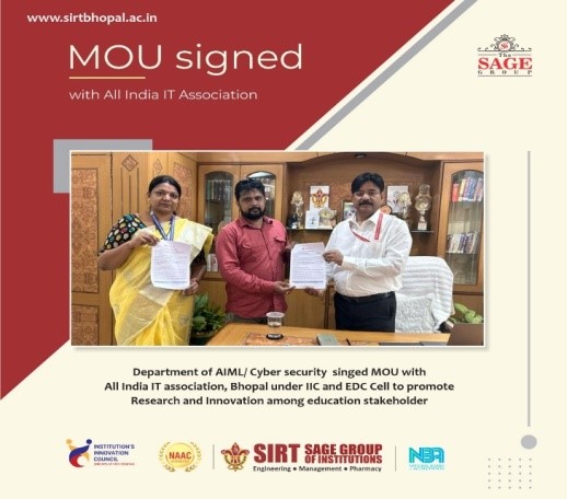 "This MoU signed between All INDIA IT ASSOCIATION(India)Sagar Institute of Research & Technology, Bhopal has signed MoU between All INDIA IT ASSOCIATION Bhopal Under...